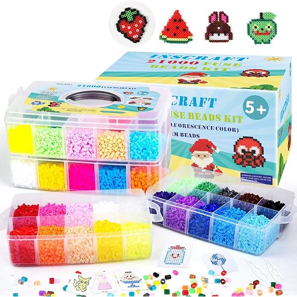 Amazon Com Fuse Beads 21 000 Pcs Fuse Beads Kit 22 Colors 5mm For Kids Including 8 Ironing Paper 48 Patterns 4 Pegboards Tweezers Beads Compatible Kit By Inscraft Arts Crafts Sewing